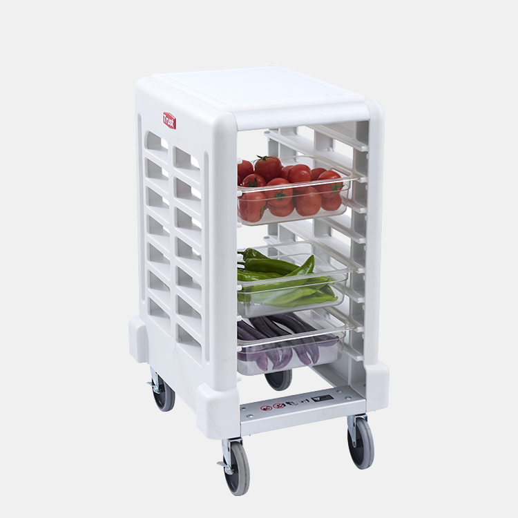 • 다양한 사이즈의서빙 트레이 및 푸드 박스와 함께 사용 가능하며, 중국, 유럽 및 미국 표준 규격의 푸드팬을 수납 가능한 다용도 랙/카트
