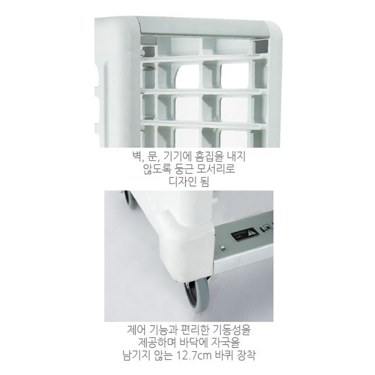 • 바닥에 자국을 남기지 않는 12.7cm 바퀴 장착 (4개 중 2개 바퀴는 바닥 고정 장치 내장)
